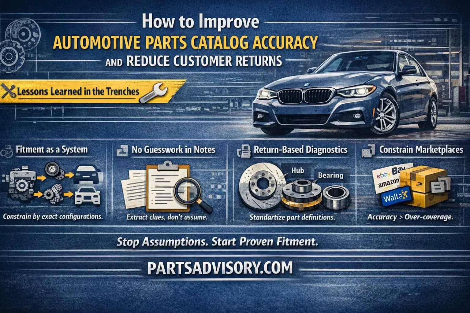 PartsAdvisory has audited enough aftermarket catalogs to say this clearly: most automotive returns come from fitment errors, not customers. They come from catalogs that allow incorrect assumptions.